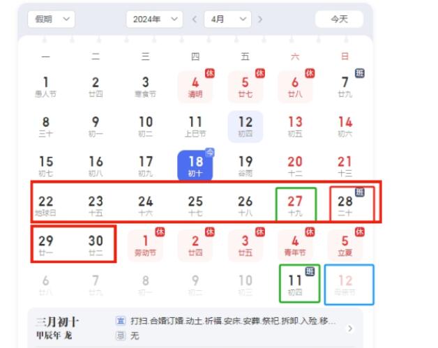 假期规定需要补班的是4月28日周日,和5月11日周六,这是针对双休制定的补班但对于单休的呢,4月27日周六原本就是工作日,就意味着单休的朋友节前需要从日-4月30日,连上9天班。节后,5月11日原本就是周六要上班的,这算不上补班。