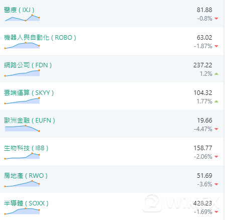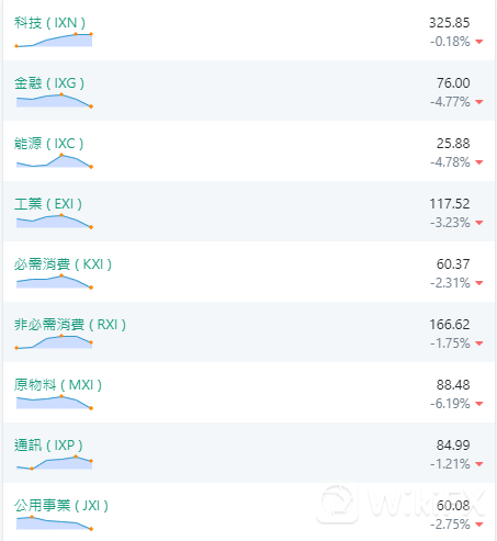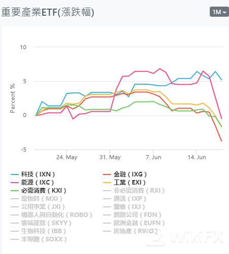 目前市场环境依旧处于在低迷状态下运行,从上周美股三大股指大幅收低,但纳指受到科技股上涨提振,相对强于道指和标普。目前市场焦点让然在关注美联储何时会开始加息进程。从ETF整体产业的表现,则集体拐头下行,其中,金融产相关产业处于在领跌状态下。短期关注:网络公司(FDN),云端运算(SKYY),产业中个股的多头机会,其它产业均以偏空为主。