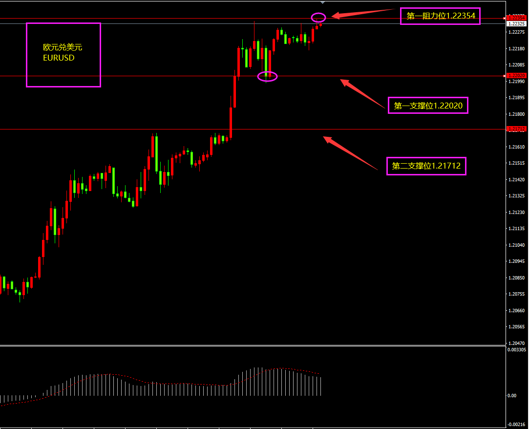 技术点评:天图欧元收大阳线,价格大幅冲高,多头异常强劲,因美指大幅走弱利好欧元,短期冲高后面临技术回调,日内更多以高位震荡为主?小时图欧元价格创新高,而MACD能量体未创新高,形成顶背离,上方有大阴线产生,空头增强,但多头仍然强劲,日内更多以偏震荡为主?(若再度产生大阴线,方可试探性看空)