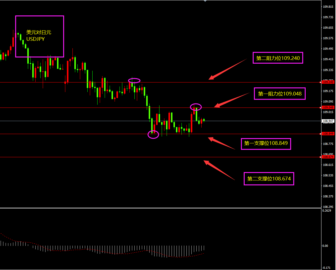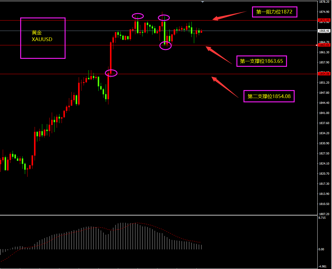 策略分析:第一、二支撑位附近轻仓看多,如有大阴线跌破第二支撑位则转为观望。