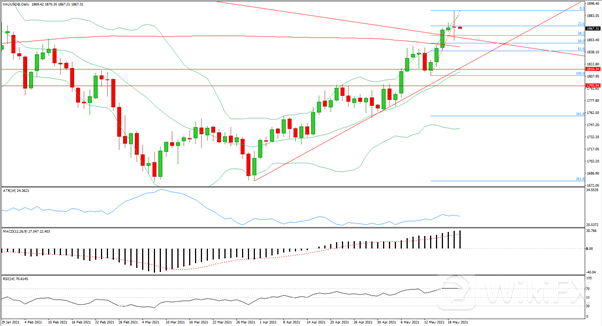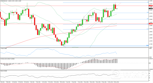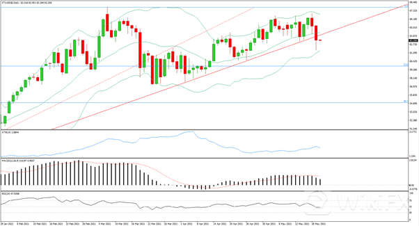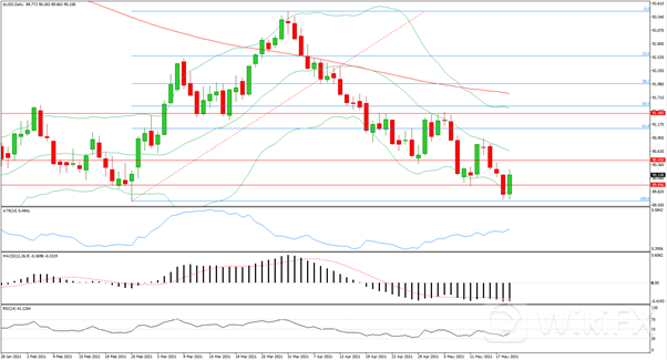 4月会议纪要显示,美联储官员们谈到缩减购债,暗示将开始讨论减码量化宽松,这提振了美元,美元周三上涨0.43%,结束了连续四天的跌势。另一方面,美元也受益于广泛的避险情绪,美国主要股指下滑,加密货币暴跌,表明投资者正在撤离风险资产,这对美元有利,这是资金流向安全资产的信号。