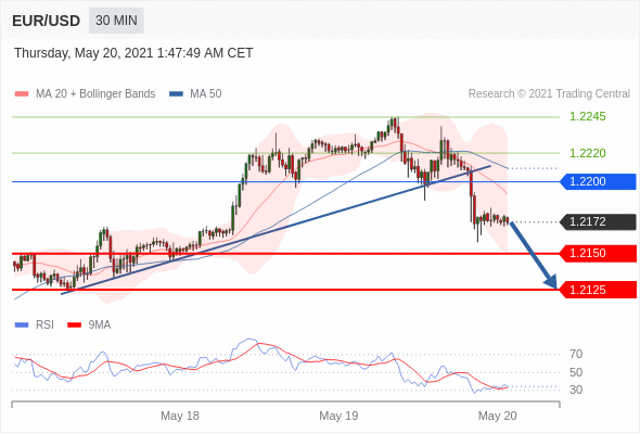 交易策略: 在 1.2200 之下,看跌,目标价位为 1.2150 ,然后为 1.2125 。
