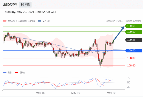 交易策略: 在 109.00 之上,看涨,目标价位为 109.50 ,然后为 109.65 。