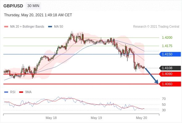 交易策略: 在 1.4150 之下,看跌,目标价位为 1.4090 ,然后为 1.4060 。