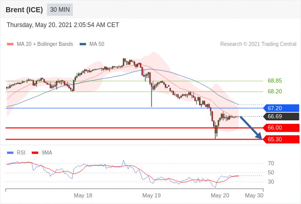 交易策略: 在 67.20 之下,看跌,目标价位为 66.00 ,然后为 65.30 。