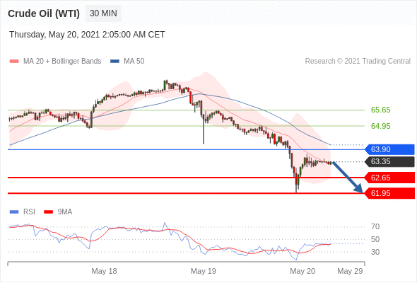 交易策略: 在 63.90 之下,看跌,目标价位为 62.65 ,然后为 61.95 。