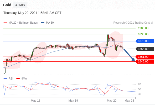 交易策略: 在 1878.00 之下,看跌,目标价位为 1851.00 ,然后为 1843.00 。