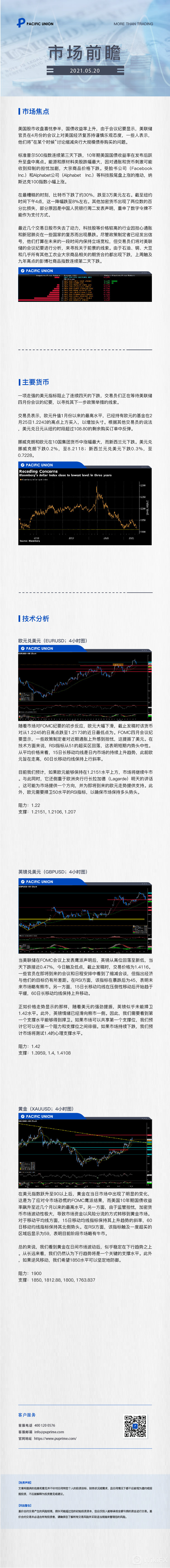 标准普尔500指数连续第三天下跌,10年期美国国债收益率在发布后跃升至盘中高点。能源和原材料类股跌幅最大,因对通胀和货币刺激可能受到抑制的担忧加剧,大宗商品价格下跌。在最槽糕的时刻,比特币下跌了约30%,跌至3万美元左右。一项走强的美元指标阻止了连续四天的下跌,交易员们正在等待美联储四月份会议的纪要,以寻找其下一步政策举措的线索。【更多市场动向,请登陆PACIFIC UNION官网-市场报告】