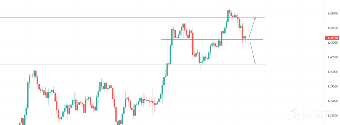 GBPUSD:美元指数上升,英镑大幅下跌,关注1.41111的支撑位置,4小时回调收多即可看多至压力位1.41873,止损1.40967;关注1.40988压力位,4小时跌破收空即可看空至1.40240支撑位,止损1.41171