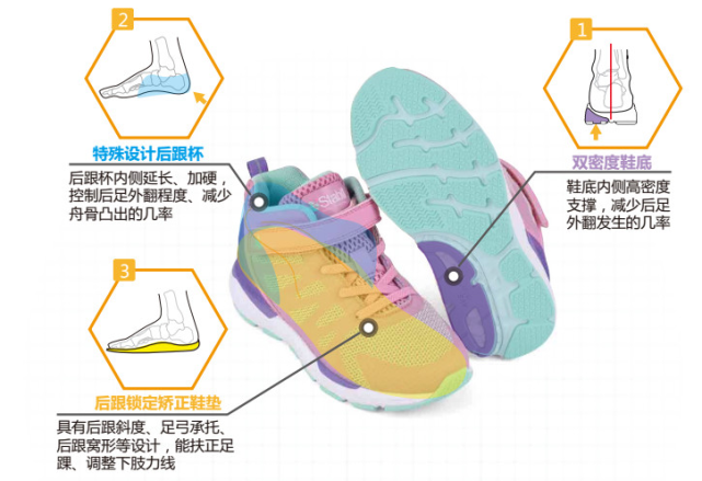 除了有专业仪器和足部矫形师外,针对儿童严重扁平足情况,爱矫健的矫正鞋还有三大功能特点,多方面干预严重扁平足情况。