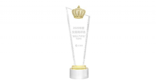 图:皇御环球获颁“2020年度最佳人气平台商”奖杯