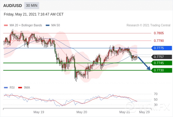 澳元/美元 当日内: 存在压力。 转折点:0.7775 交易策略:在 0.7775 之下,看跌,目标价位为 0.7745 ,然后为 0.7730 。备选策略:在 0.7775 上,看涨,目标价位定在 0.7790 ,然后为 0.7805。 技术点评:RSI技术指标运行趋势复杂,倾向于下跌。
