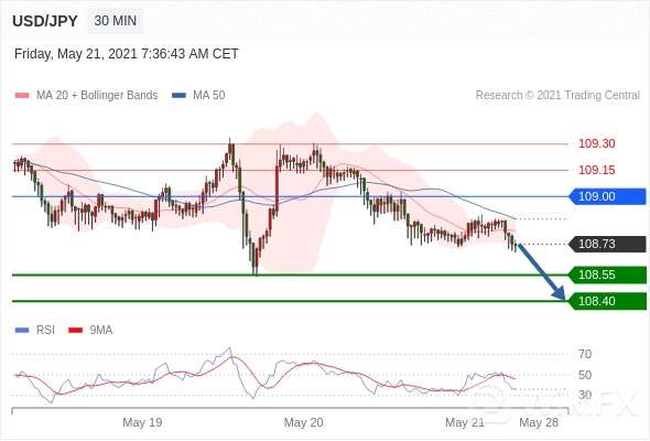 美元/日元 当日内: 短期关键阻力位在109.00。 转折点:109.00 交易策略:在 109.00 之下,看跌,目标价位为 108.55 ,然后为 108.40 。备选策略:在 109.00 上,看涨,目标价位定在 109.15 ,然后为 109.30。 技术点评:RSI技术指标运行趋势复杂,倾向于下跌。