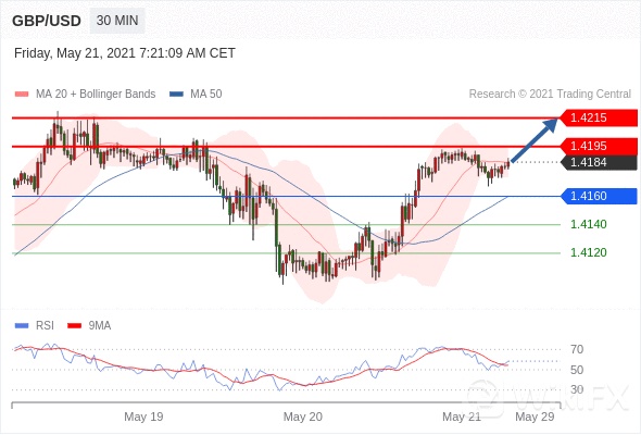 英镑/美元 当日内: 在1.4160之上,看涨。 转折点:1.4160 交易策略:在 1.4160 之上,看涨,目标价位为 1.4195 ,然后为 1.4215 。备选策略:在 1.4160 下,看空,目标价位定在 1.4140 ,然后为 1.4120。 技术点评:RSI技术指标向上运行。