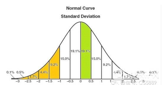 夏普比率假设投资回报符合正态分布(见下图)。 从数学上说,大量独立随机事件之和一般符合正态分布。 例如不停地扔硬币,正面为1,反面为-1,大量重复后结果之和就符合正态分布。 前面的博客提到过,学术界流行“有效市场理论”:股市每一步运动方向都是独立随机的,相当于不断“扔硬币”,最后回报率当然就符合正态分布。再讲下去就是数量金融的基础课《随机过程》了,就此打住。