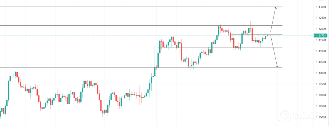 美元指数震荡下滑,英镑小幅上升,关注1.41757的压力位置,4小时突破收多即可看多至压力位1.43023,止损1.41447;关注1.41757压力位,4小时受阻收空即可看空至1.40240支撑位,止损1.42043