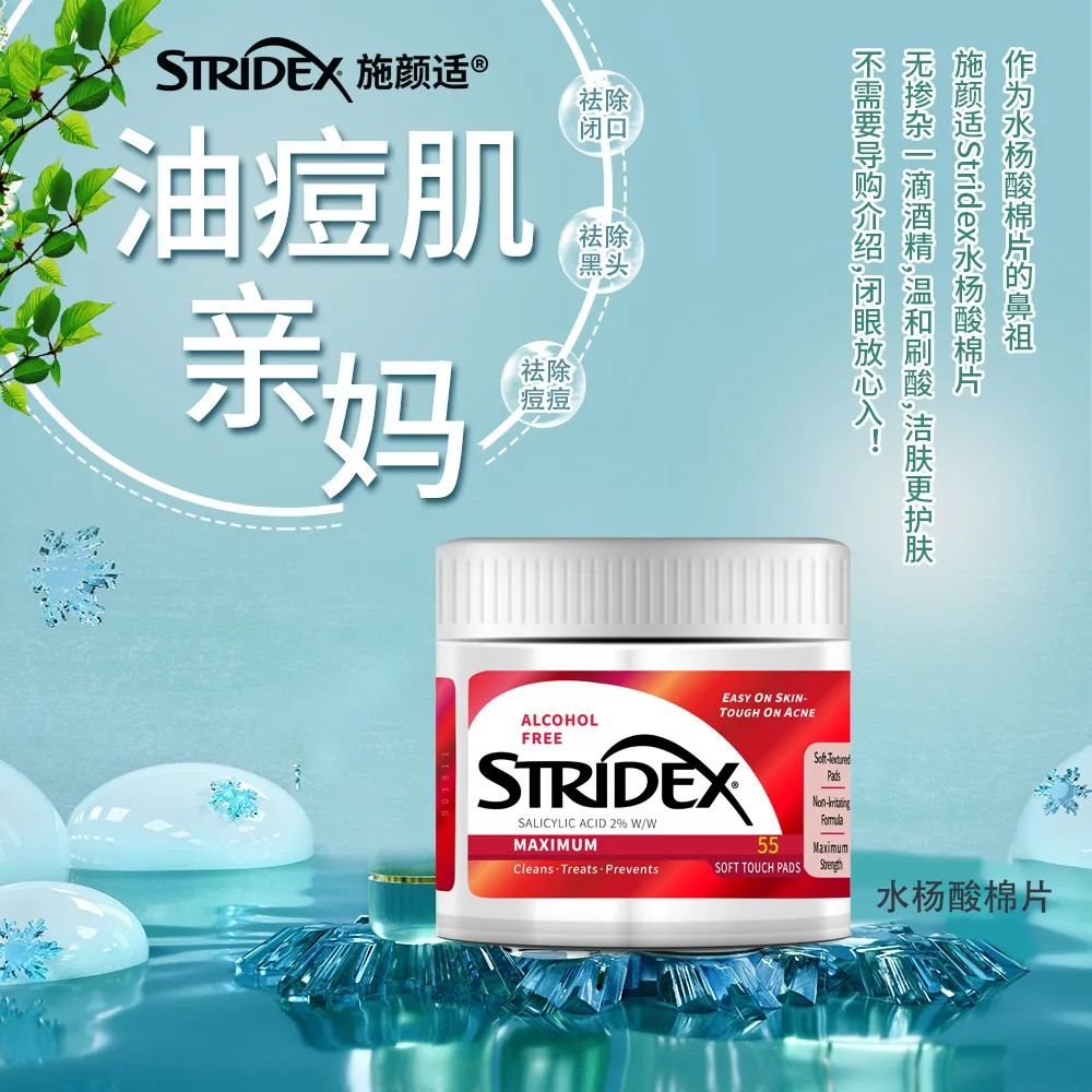如果你是刷酸进阶选手,皮肤已经有了耐受,想改善肤质,请选它!stridex施颜适水杨酸棉片,它的水杨酸含量2%,能够促进痘痘愈合,清洁毛孔,加快皮肤换新,坚持使用后,皮肤毛孔得到改善,就会让你的皮肤焕然一新!