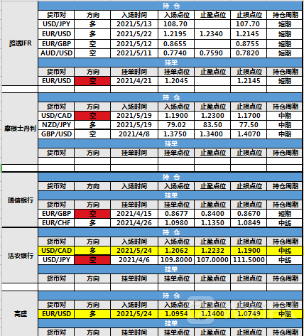 持仓方面,法农银行美元兑加元仓位调整,入场点位调整为1.2062,止盈点位调整为1.2232,止损点位调整至1.1900,目前处于持仓中。高盛欧元兑瑞郎仓位调整,入场点位调整为1.0954,止盈点位调整为1.1400,止损点位调整至1.0749,目前处于持仓中。