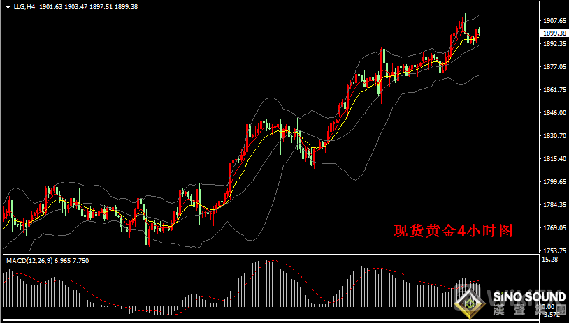 现货黄金日线图看,昨日金价呈长上影线K线,金价高点回落显示金价在1912附近存在较大阻力压制,不过,目前金价维持在5日均线上方运行,估计5日均线存在一定支撑能力,今晚重点关注此外支撑得失。金价日线指标看,日线MACD指标正动能柱持续高位,RSI指标维持在超买区域75位置附近运行。同时,晚间关注美国数据影响。
