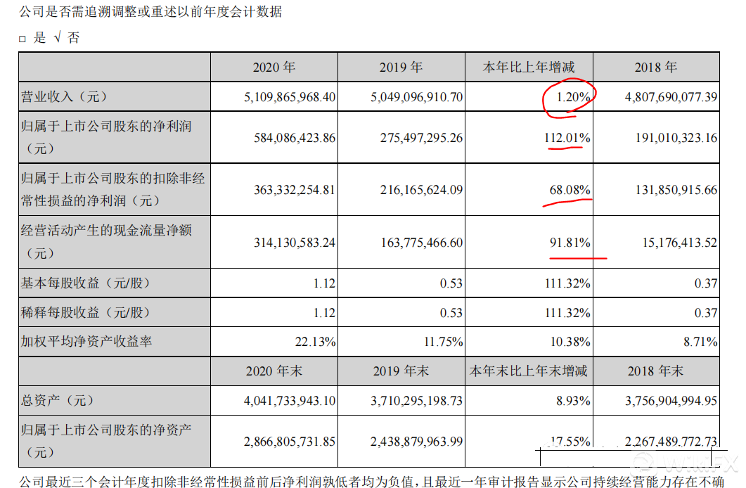 2020年度的营收没怎么大增,营收51亿,2018年48亿,2019年50.4亿,但是净利润暴增112%,扣非暴增68%,非常的奇怪。经过查询,去年两月份,有一笔处置非流动性资产,导致了净利润暴增。