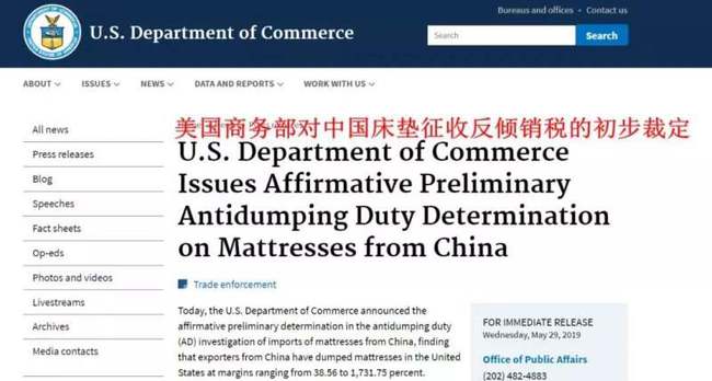 直到不久前,美国针对东南亚八国的床垫反倾销落锤,床垫品牌的反倾销税率被推到了1700%以上,国产床垫行业的海外市场又一次遭受了重大打击。但很明显,美国本土床垫产业顶不住中国床垫的冲击,只能再次祭出反倾销的大杀器,对中国床垫业释放禁招。