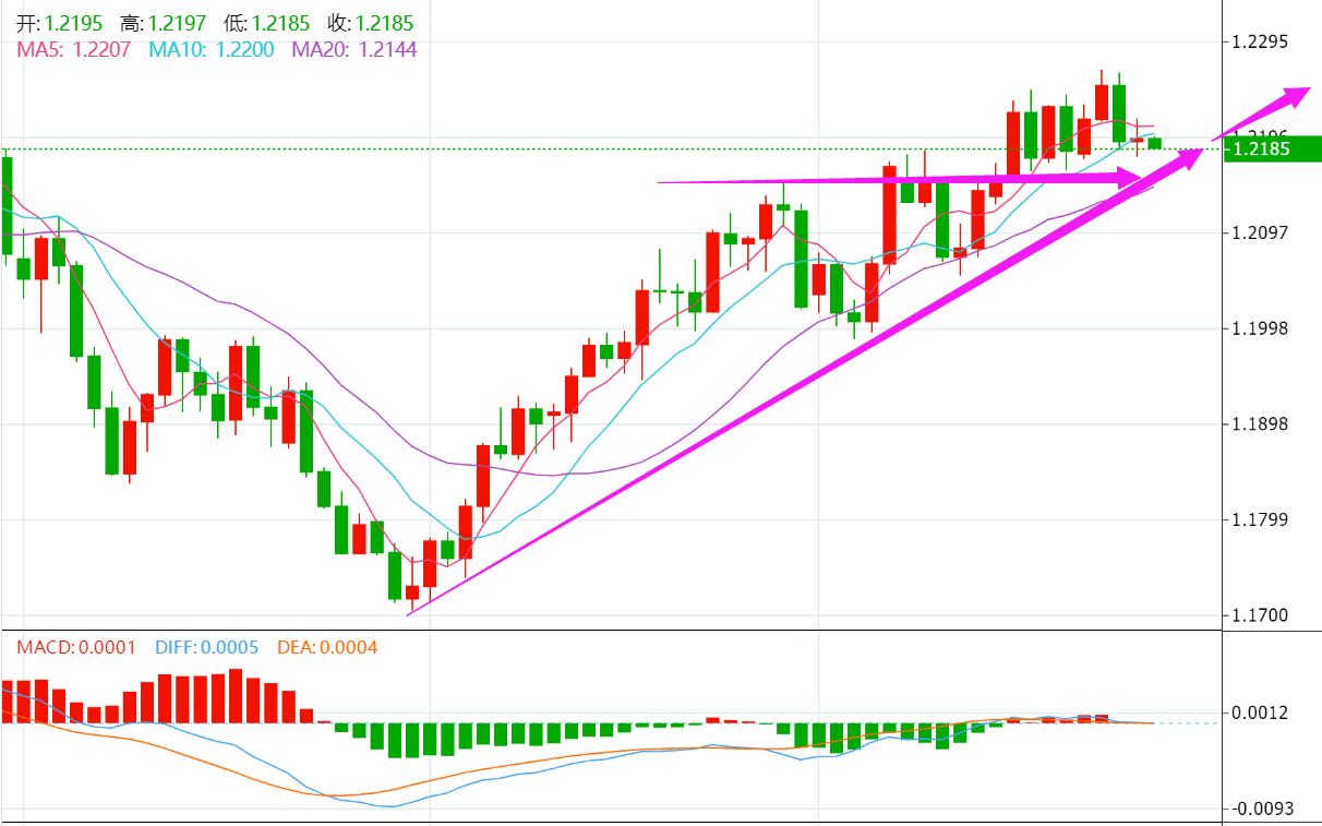 欧美汇率触及1.2265高点后遇阻回落,目前下行至1.2170附近,下行动能减弱迹象明显,左侧盘整区间低点于1.2150附近构成形态支撑,目前依然属于技术性回调,中期攀升走势尚未扭转,建议回调止跌后逢低做多。 稳重者:入场位:1.2060-1.2110,止损1.2010,止盈位1.2170。 激进者:入场位:1.2090-1.2150,止损1.2050,止盈位1.2190。