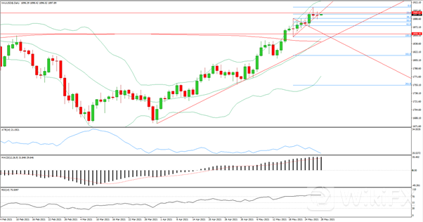 日线级别向上大幅试探后被压回,收出第二颗十字星,MACD上行动能保持,RSI超买状态更加严重。4小时级别价格价格整体下行,但疑似走出旗型走势,后市或可能继续上行,MACD上行动能减弱,RSI从站住50轴线后继续塔头向上,今日空单在1900-1902区域入场,止损在1910,止盈1889