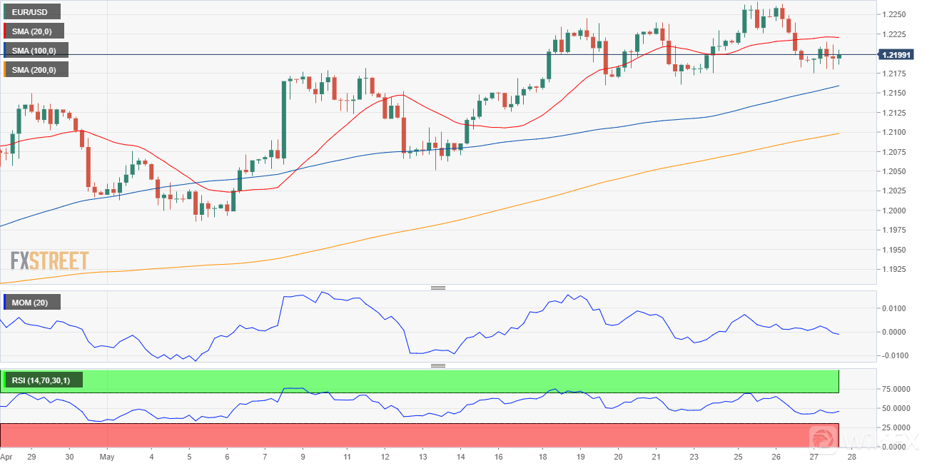 欧元兑美元交易于1.2200附近,风险偏向下行。该货币对在无方向的20均线下方交易,而技术指标保持在负水平内。较长的移动平均线维持其看涨斜率,其中100均线在1.2150附近提供支撑,而相关的每日低点在1.2160。跌破该区域可能会向下延伸至1.2000的位置。