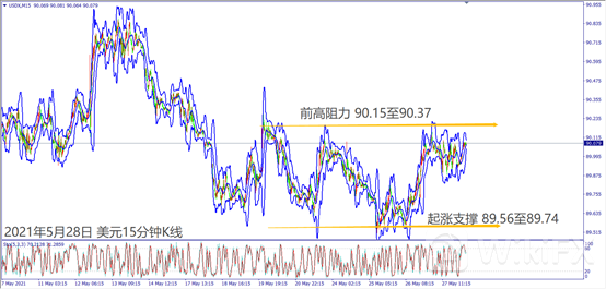 昨日(27日)欧盟官员对经济复苏表示乐观,几次带动欧美冲高1.2200关口,但是德国公布消费者信心指数不佳造成欧美回落。英国首相约翰逊对新冠疫苗注射两剂表示有信心对抗印度变种病毒,带动镑美上涨约110个点。晚间美国公布第一季度GDP不佳但请领失业金人数下滑,造成美元介于90关口附近震荡整理。