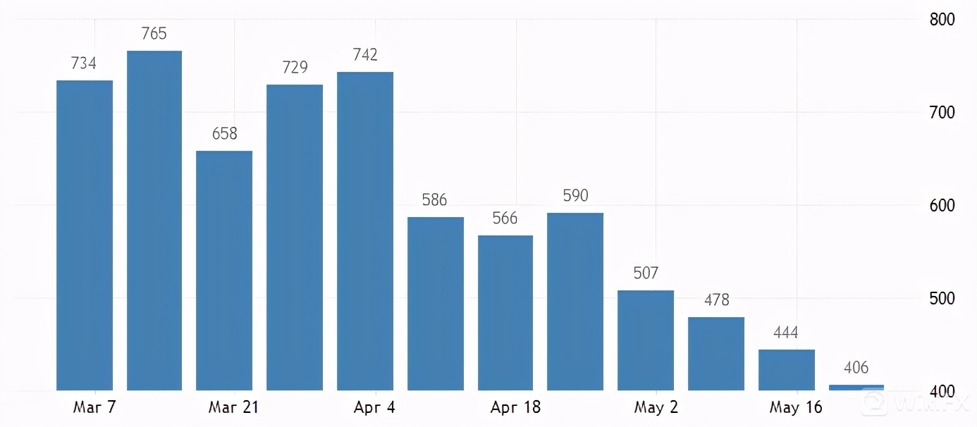 昨日最新公布的上周初次申请失业金人数再次减少,从此前的44.4万人减少至40.6万人。这是自去年美国3月份疫情以来,当周失业金领取人数最低的水平,也远低于市场预期的42.5万,