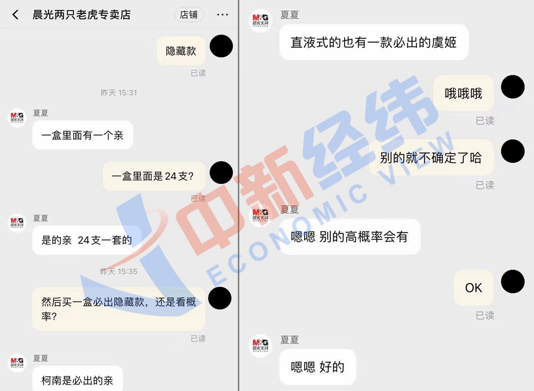 值得注意的是,不同系列的中性笔抽中“隐藏款”的概率并不相同。例如,某文具盲盒网店客服告知中新经纬客户端,有系列的中性笔共有13个款式,购买一盒(24支)可包含所有款式,即抽中“隐藏款”概率为100%。另一系列的中性笔有12个款式,但购买一盒并不能保证100%抽中“隐藏款”。中新经纬客户端发现,一盒中性笔在网络平台上的售价在几十元到上百元不等,由于“隐藏款”被抽中的概率较低,反而让大家对它更为期待,因此吸引买家反复购买。
