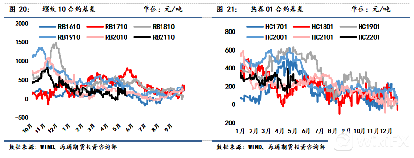 螺纹10合约基差从208缩小至88元/吨,螺纹01合约基差从337缩小至190元/吨,螺纹05合约基差从428缩小至287元/吨。热卷10合约基差从187缩小至122元/吨,热卷01合约基差从333缩小至247元/吨,热卷05合约基差从430缩小至360元/吨。