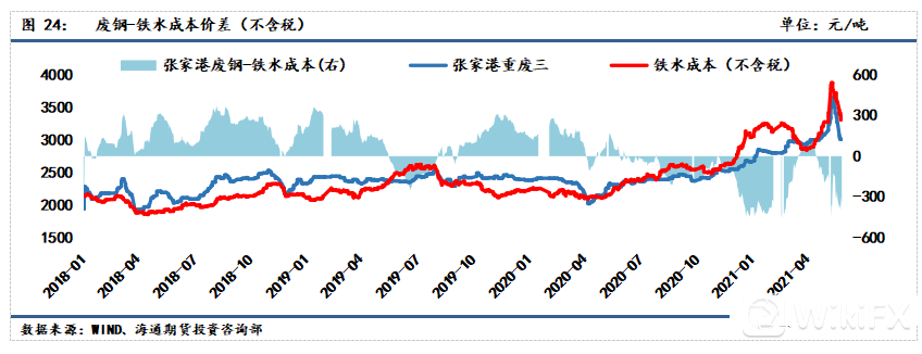 短流程:上周废钢现货价格有所下滑,张家港重废三价格下跌260元/吨至3010元/吨,由于上周废钢价格表现弱于铁矿石价格,废钢铁水成本价差从废钢贴水铁水成本312元/吨扩大至350元/吨左右。华东地区短流程吨钢利润盈利情况有所好转,华东地区谷电利润从561扩大至593元/吨,