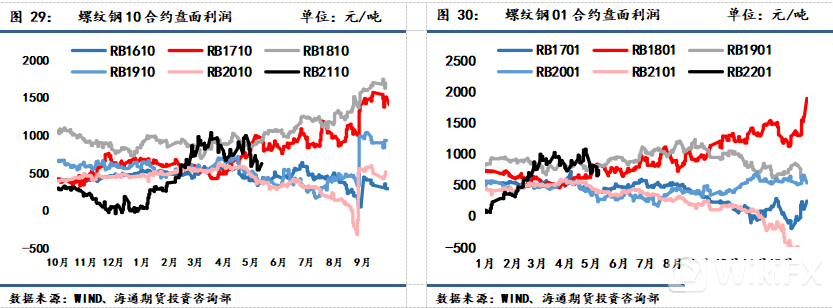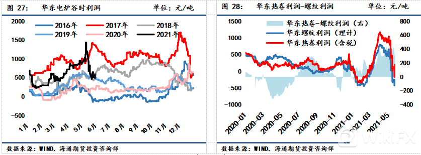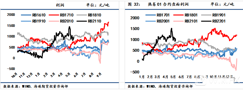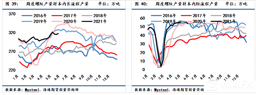 长流程:准一级冶金焦上周维稳,铁矿石现货价格下跌,总体上周长流程生产成本有所下降;螺纹热卷现货价格均走弱,热卷现货价格强于螺纹现货价格,由此相较前周钢材吨钢利润,华东地区螺纹和热卷即期利润均有所扩大。截至5月28日,华东螺纹吨钢利润(过磅)约为-138元/吨,华东热卷利润扩大至192元/吨左右。