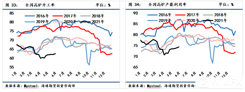 截至5月28日一周,全国163家钢厂高炉产能利用率环比升至74.33%,全国高炉检修限产量下降至63.62万吨左右。唐山126座高炉中检修数量下降至62座,周度影响产量下降至102.67万吨,唐山高炉产能利用率较上周增加0.67%至63.06%。