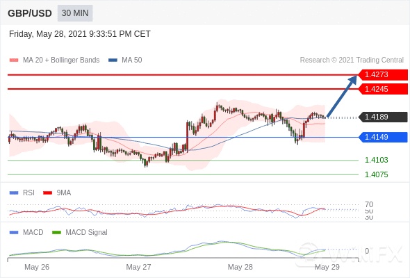英镑/美元 当日内: 看涨,当 1.4149 为支撑位。 转折点为:1.4149 交易策略:看涨,当 1.4149 为支撑位。备选策略:如跌破 1.4149 ,GBP/USD 目标方向定在 1.4103 和 1.4075 。 技术点评 :RSI技术指标大于中性区域50。 MACD技术指标呈现看多状态并 处在其信号线的上方。 此外,价位高于其20天及50天移动平均线 ( 分别位于 1.4176 和 1.4187 )。