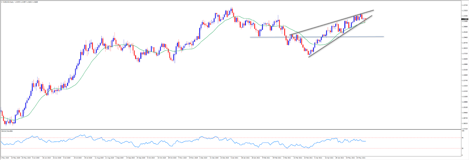 数据转好以及全球各主要央行相继释放出收紧政策的信号使得美联储正面临着内外双重压力,因此6月中旬的FOMC会议显得格外重要。若鹰派言论继续在市场中蔓延,或将帮助美元指数摆脱当前89-90的这一底部区域。从周线图来看,指数有望在长达10年的上升通道下轨处获得支撑。