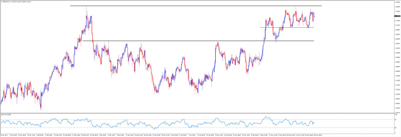 前期震荡区间的下沿1.41可以作为重要的支撑,若跌破将退守至1.40区域。