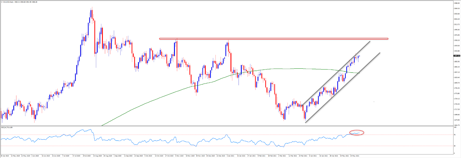 本周多数分析师和散户仍然看涨黄金后市。若金价能突破1913(5月26日的上影线),将有望继续冲击1960(1月高点)。下方关注1870-1880的支撑区域。