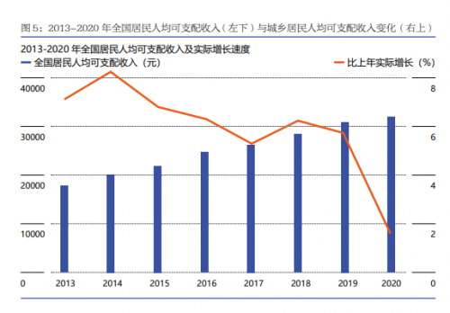 随着国家经济的向稳发展,我国国民财富的积累激发了资产管理市场活力,推动存量财富逐步步向资本市场投资资金转化,具体表现为居民人均可支配收入的持续增长以及个人可投资资产规模的攀升。据微淼财商教育发布的《国民财商教育发展白皮书》数据显示,2013-2020 年间全国居民人均可支配收入从 18311 元增至 32189 元,扣除价格因素年均实际增长 5.9%。