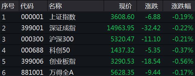截至开盘,沪指跌0.19%,报3608.60点;深成指跌0.22%,报14963.95点;创业板指跌0.56%,报3290.53点。