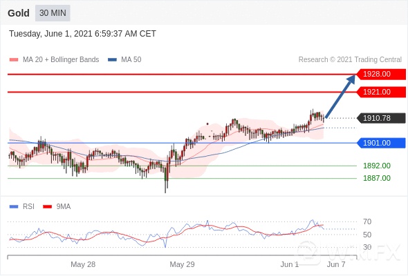 黄金 当日内: 在1901.00之上,看涨。 转折点:1901.00 交易策略:在 1901.00 之上,看涨,目标价位为 1921.00 ,然后为 1928.00 。备选策略:在 1901.00 下,看空,目标价位定在 1892.00 ,然后为 1887.00。 技术点评:RSI技术指标运行趋势复杂,倾向于上升。