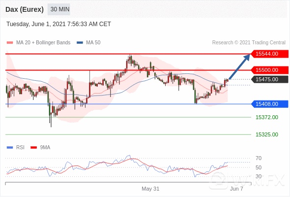 德国DAX指数期货(Eurex)当日内: 超短线(当日内)支撑位在15408.00附近。转折点:15408.00 交易策略:在 15408.00 之上,看涨,目标价位为 15500.00 ,然后为 15544.00 。 备选策略:在 15408.00 下,看空,目标价位定在 15372.00 ,然后为 15325.00。 技术点评:15408.00附近形成了一个支撑的底部,将带来走势短期内的稳定。