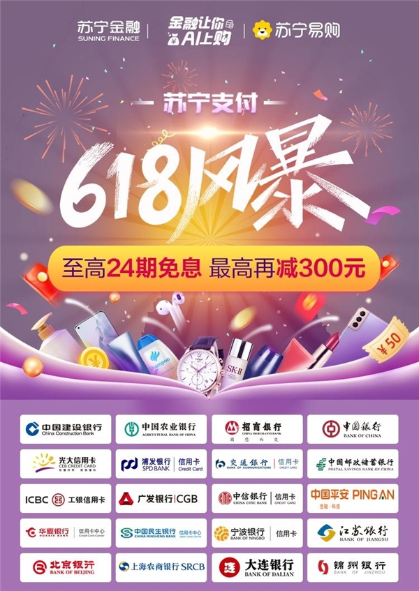 更多银行优惠信息,欢迎登陆苏宁易购APP搜索“苏宁支付”,或登录苏宁金融APP“618贴金嗨购 省钱省心”-“省钱省心”-“苏宁支付”活动页了解。