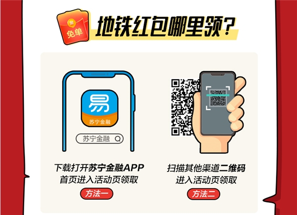 用户通过苏宁金融APP、分享活动页面、扫描线下物料二维码等渠道,都可进入无锡地铁免费坐活动页面,参与活动领红包。