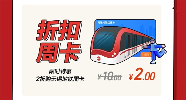 用户可在苏宁金融APP–无锡地铁乘车码–福利中心,以2元折扣价格购买10元无锡地铁乘车周卡。周卡自购买之日起7天有效,用卡每天可享1次减2元优惠,有效期内最多可使用5次。