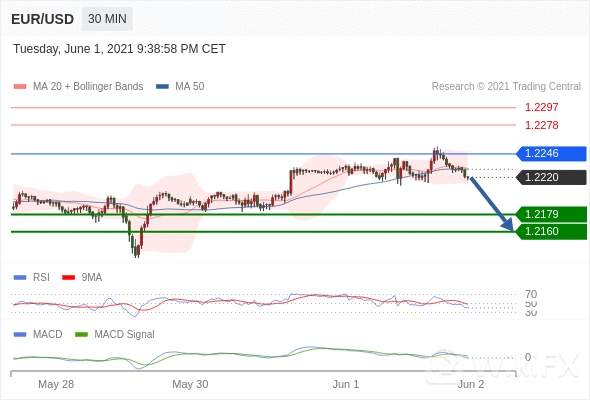 欧元/美元 当日内: 看跌,在 1.2246 之下。 1.2246 作为转折点。 交易策略:看跌,在 1.2246 之下。备选策略:向上突破 1.2246 ,将带来继续上行的趋势,目标位定在 1.2278 和 1.2297 。 技术点评 :RSI技术指标小于中性区域50。 MACD技术指标呈现看跌状态并 处在其信号线的下方。 此外,价位低于其20天及50天移动平均线 ( 分别位于 1.2230 和 1.2229 )。