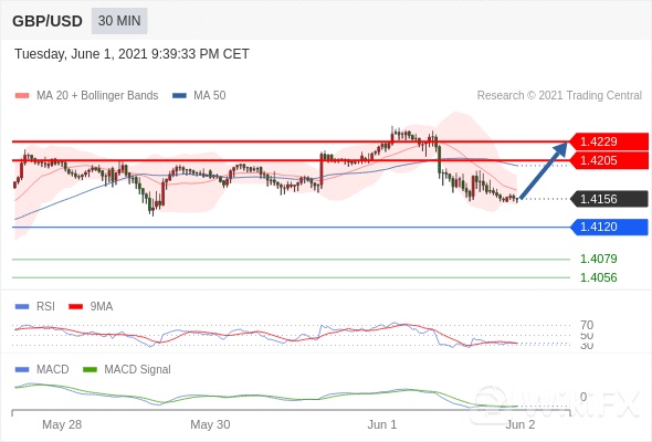 英镑/美元 当日内: 有上涨的可能,目标价位定在 1.4229 。 1.4120 作为转折点。交易策略:有上涨的可能,目标价位定在 1.4229 。 备选策略:向下跌破 1.4120 ,将带来继续下跌的趋势,目标位为 1.4079 然后为 1.4056 。 技术点评 :RSI技术指标小于中性区域50。 MACD技术指标呈现看跌状态并 处在其信号线的上方。 此外,价位处在其20天及50天移动平均线下方 ( 当前是 1.4167 和 1.4199 )。