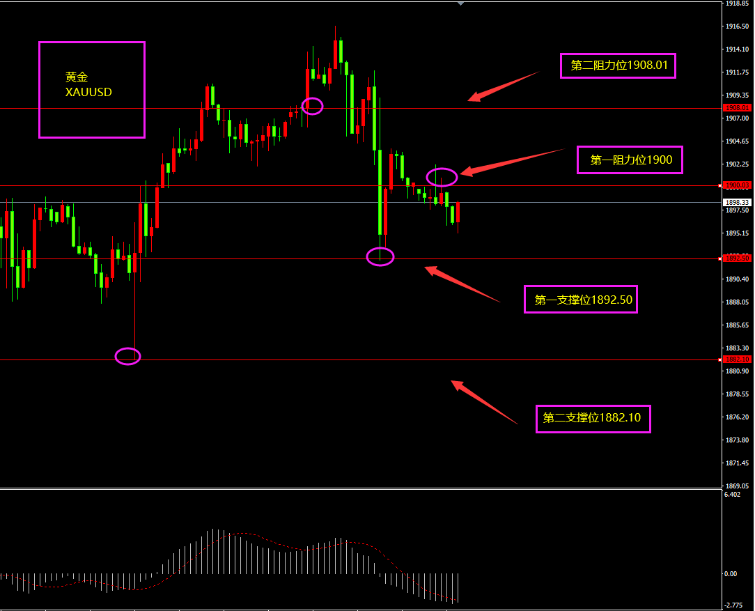 策略分析:第一、二支撑位附近轻仓看多,如有大阴线跌破第二支撑位则转为观望。
