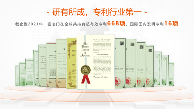 喜临门部分专利证书一览